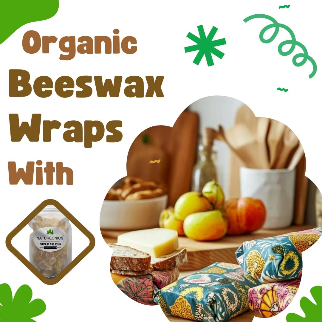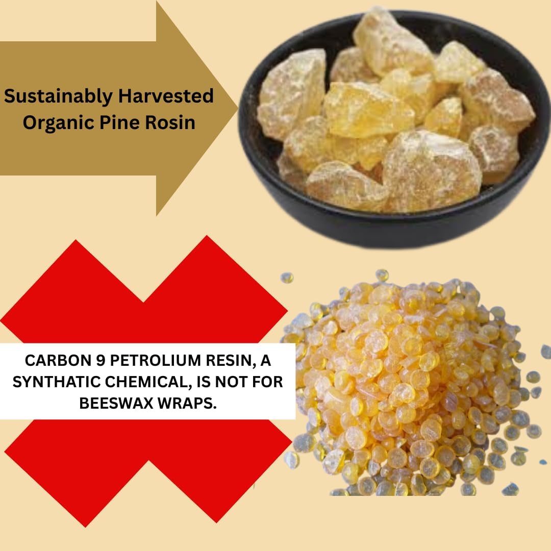 - BEESWAX WRAPS: Make Organic Bees Wax Wraps or Vegan Food Wraps by Adding Equal parts Pine Rosin to Beeswax. Make your own Alternative to Plastic Wrap. Heat in a double boiler with a low heat along with beeswax, add 4-5 drops of oil, stir until melted. Brush on cloth and let it dry.